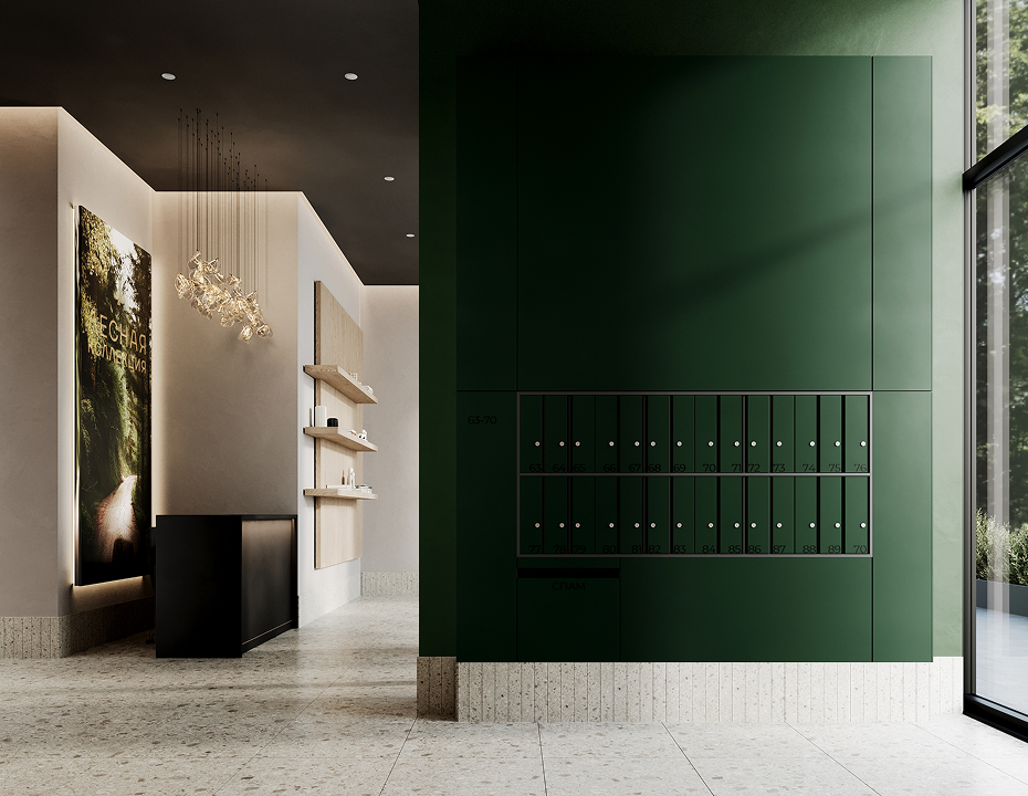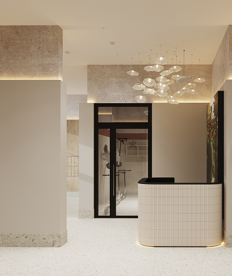 Интерьер лобби выполнен в приглушенных тонах, подчеркивая близость к природе. Детально продуманная обстановка окружает комфортом и безмятежностью